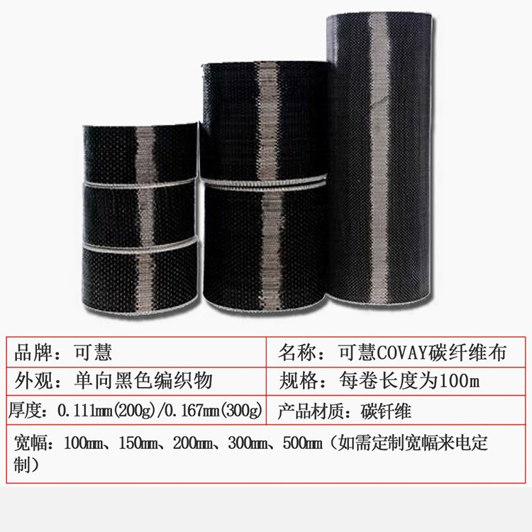 兩個規(guī)格的厚度均為0.111mm(200g)和0.167mm(300g)。各種寬度:100mm.150mm.200mm.300mm.500mm和其它工程要求的特殊寬度。伴隨著碳纖維行業(yè)的不斷發(fā)展,越來越多的行業(yè)和企業(yè)在使用碳纖維布,也有一些行業(yè)企業(yè)進(jìn)入碳纖維布行業(yè)并得到發(fā)展。